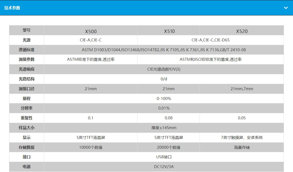 ◆支持ASTM(美国)标准,遵循标准为:GB/T 2410、ASTM D 1003