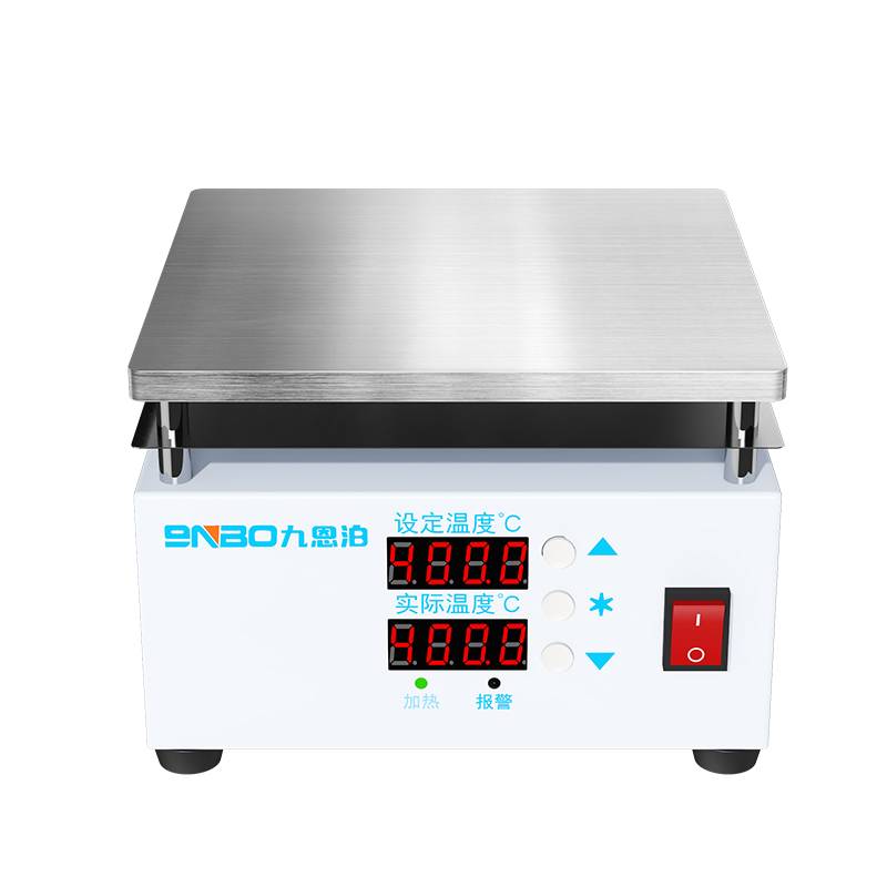 NH-R 加热台专用定制发热芯 更加耐用,针对不同行业特性 个性定制。发热管外壁为304不锈钢管,配合定制的镍铬耐热合金线,有效传导热量,发热均匀,延长使用寿命,接口处采用高密度绝缘封材,发热芯密闭性好。不锈钢镜面反射 降低散热,加热平台预装一块与发热体大小等同的镜面反射板:将发热体向下散热的热量折射回发热体,较少热量散失,提高热效率,同时防止热量下窜造成机箱温度过高,有效保护机器。 ◆双数显控温 ◆加热均匀 ◆快速升温 ◆温度40-400℃℃ ◆NH-R (200*200mm)
