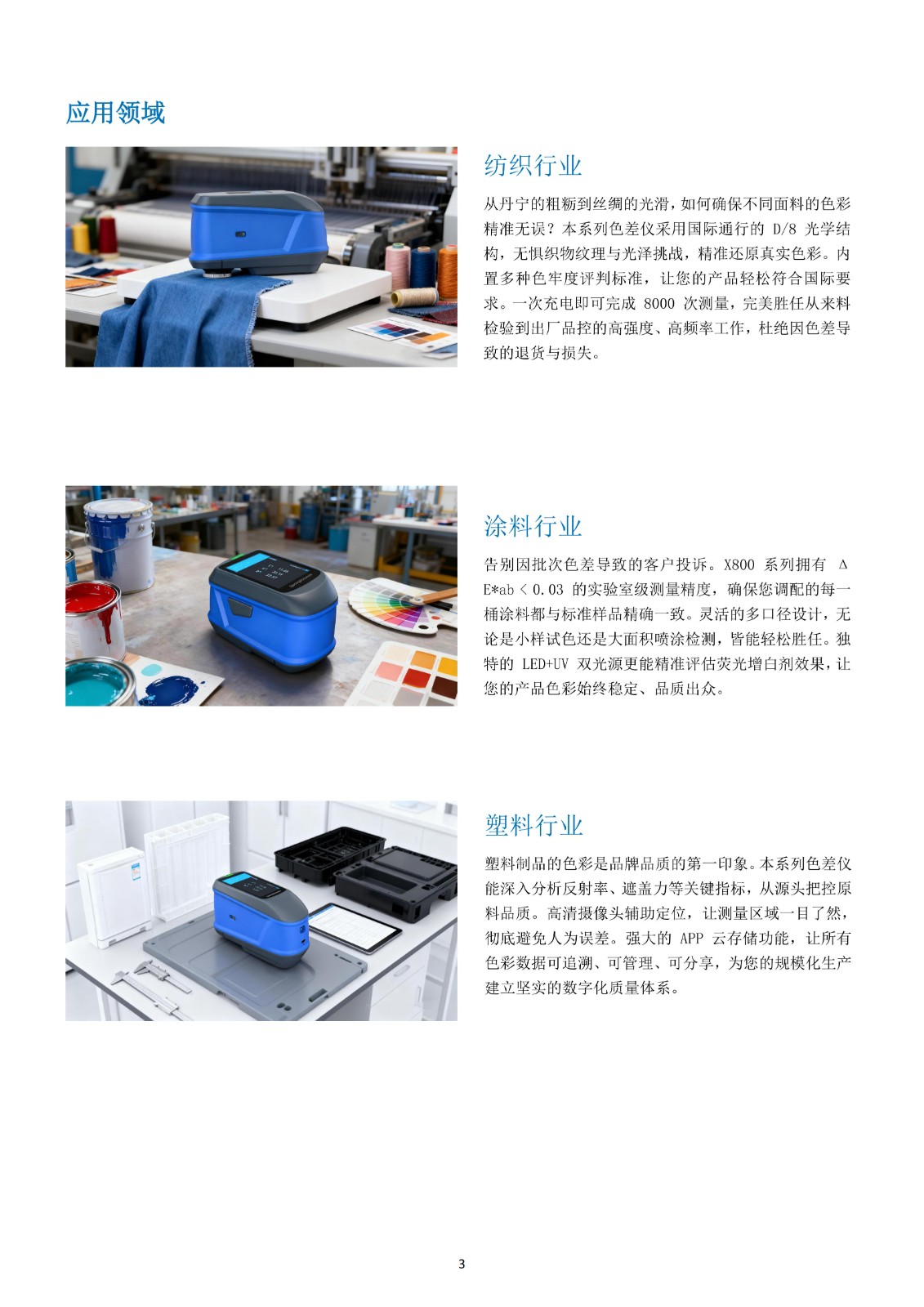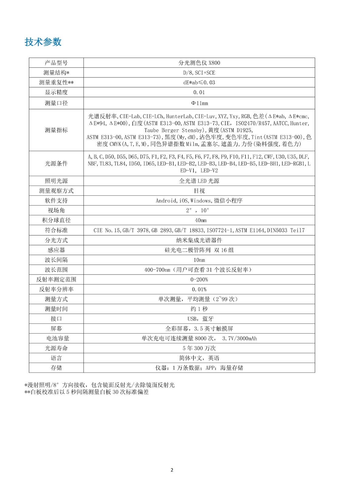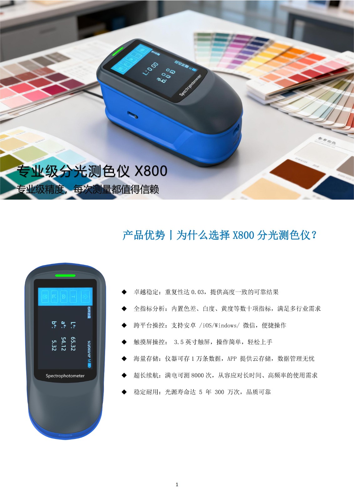 卓越稳定:重复性达0.03,提供高度一致的可靠结果 全指标分析:内置色差、白度、黄度等数十项指标,满足多行业需求 跨平台操控:支持安卓 /iOS/Windows/ 微信,便捷操作 触摸屏操控: 3.5英寸触屏,操作简单,轻松上手 海量存储:仪器可存1万条数据,APP 提供云存储,数据管理无忧 超长续航:满电可测8000次,从容应对长时间、高频率的使用需求 稳定耐用:光源寿命达 5 年 300 万次,品质可靠