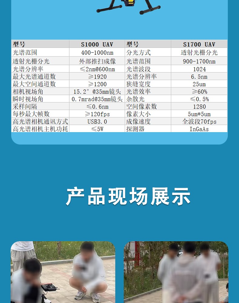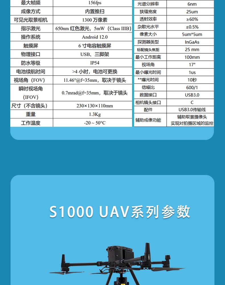 S1700 UAV 无人机高光谱相机 操作方便,无需专业无人机操控手,可实现单人操作通过地面站实时观测,飞机采样地点并可利用地面站设置逐点采集的航线数据预览及矫正功能辐射度校正、反射率校正、区域校正支持批处理,实时常用植被指数计算功能支持自定义实时分析模型输入功能. ◆操作简单 ◆逐点采集 ◆55min续航
