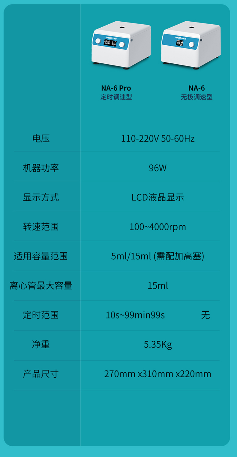 NA-8调速款离心机 智能台式数显离心机实验室PRP血清血液分离实验室美容 ◆定时范围:无 ◆功率:96W ◆离心管最大容量:15mL ◆转速:100-4000rpm ◆控制精度:士3rpm ◆尺寸:270x310x220 mm
