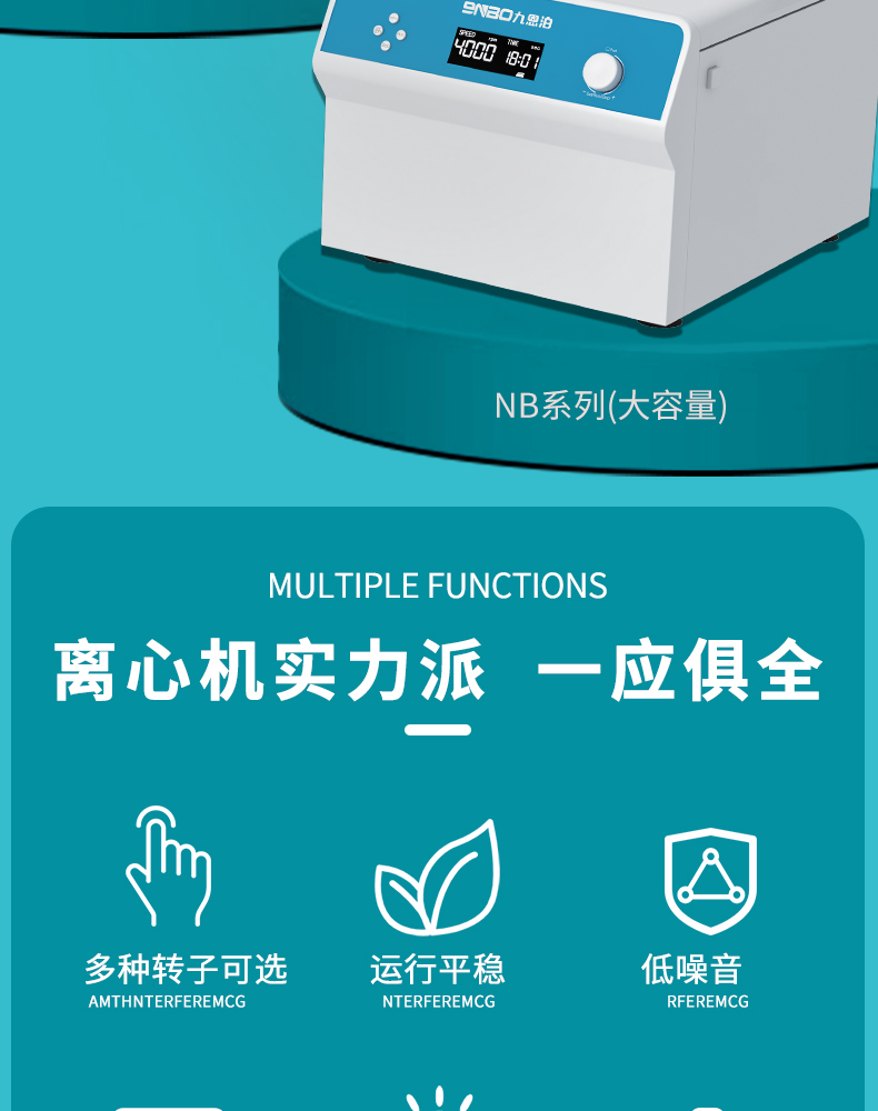 NB-50 低速大容量离心机是利用离心力分离液体与固体颗粒或液体与液体的混合物中各组分的仪器。本机采用直流电机、单片机控制,具有可预设转速和时间、定时及开盖停机等多种功能,性能稳定,容量大、运行时噪音低且离心腔内温升较小。广泛适用于大中院校、石油、化工、环保等领域. ◆定时范围:无 ◆功率:150W ◆离心管最大容量:6x50mL ◆转速:500-4000rpm ◆最大离心力:1788xg ◆尺寸:390x320x270 mm